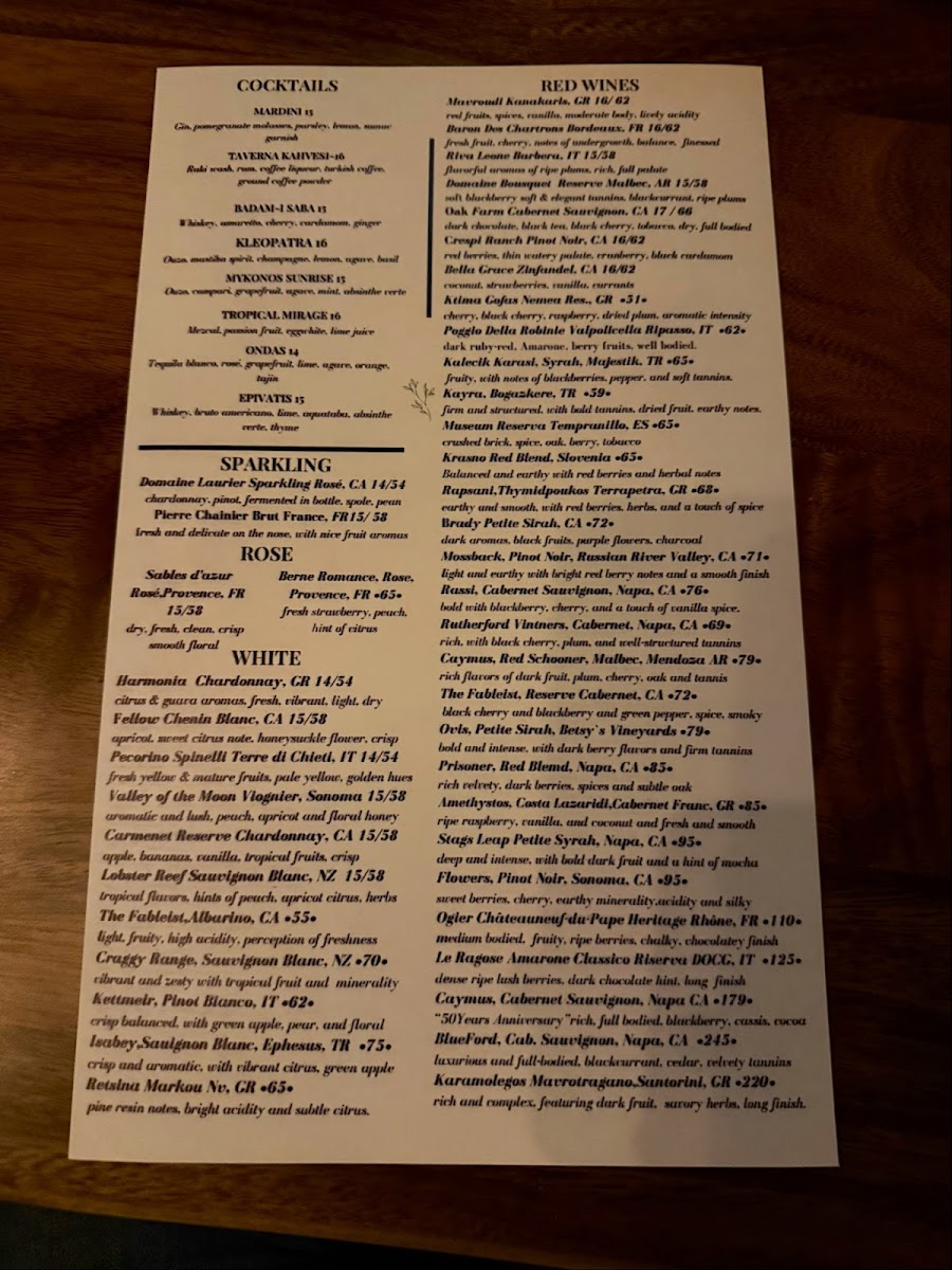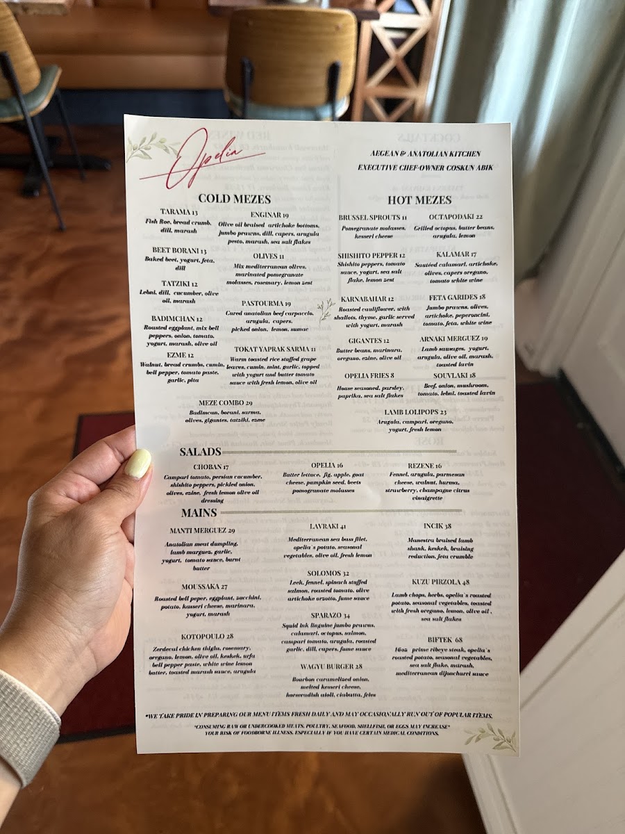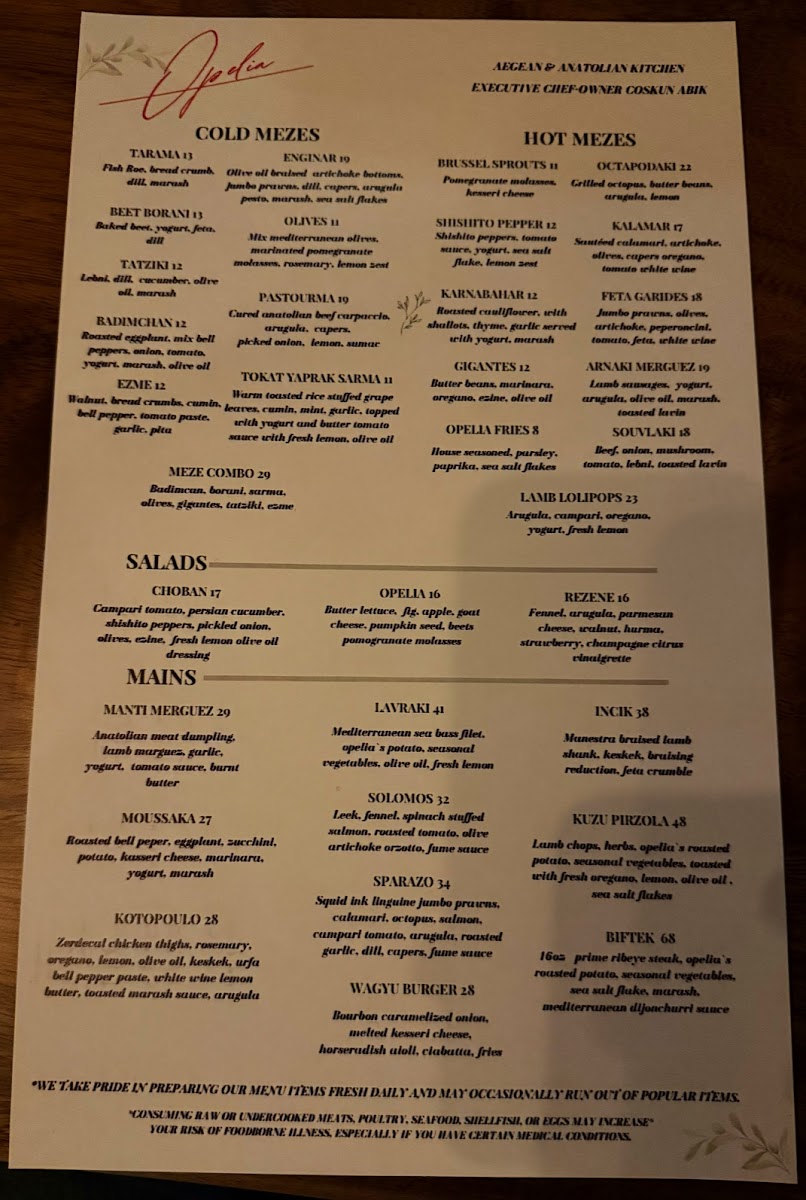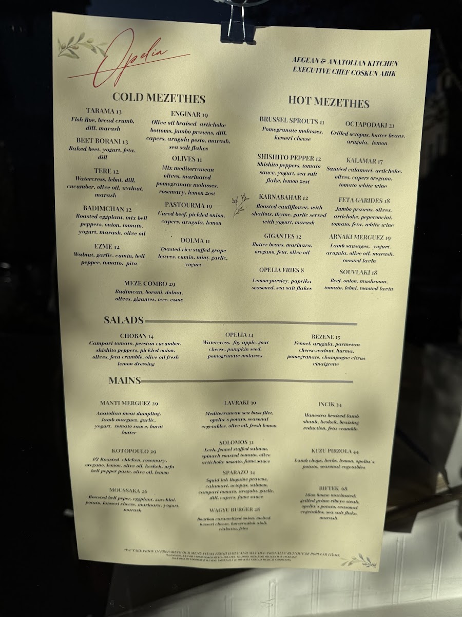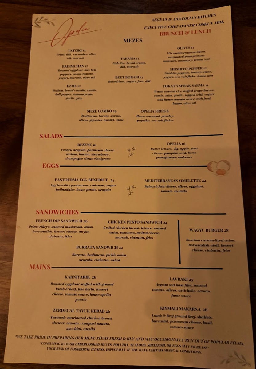 The menu at Opelia features a variety of Mediterranean-inspired dishes and beverages, organized into distinct categories to accommodate different dining preferences. Visitors can explore a selection of sandwiches, with options such as the French Dip, Chicken Pesto, and Burrata Sandwiches. These items are suitable for those seeking a satisfying light meal or casual dining experience.